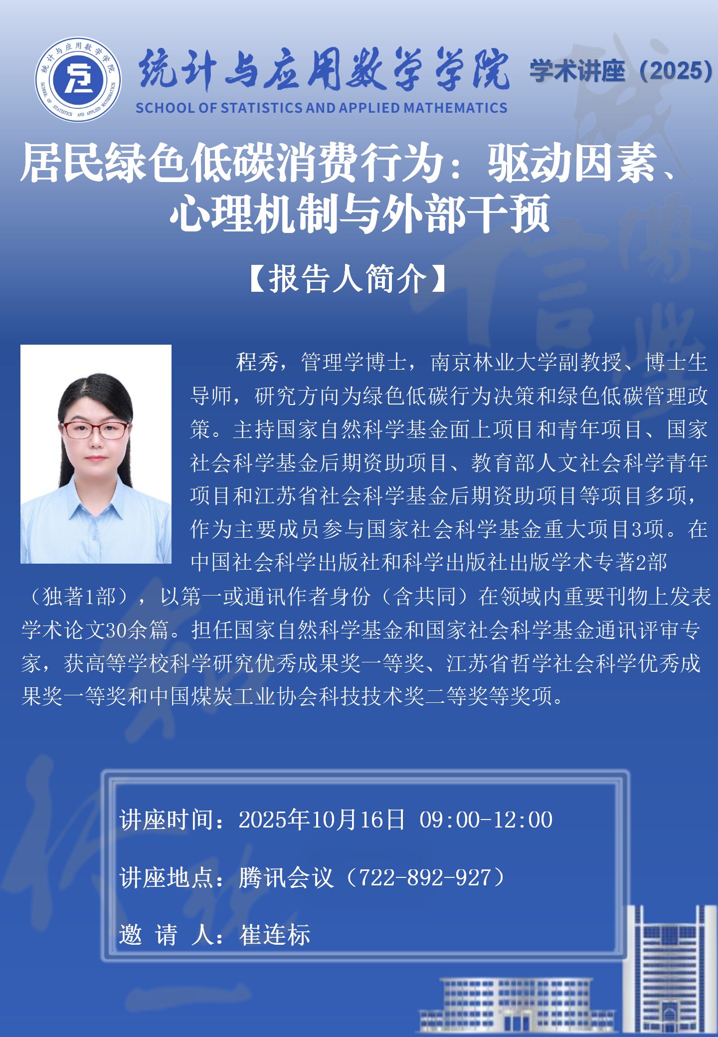 2025年学术讲座第48场:居民绿色低碳消费行为:驱动因素、心理机制与外部干预