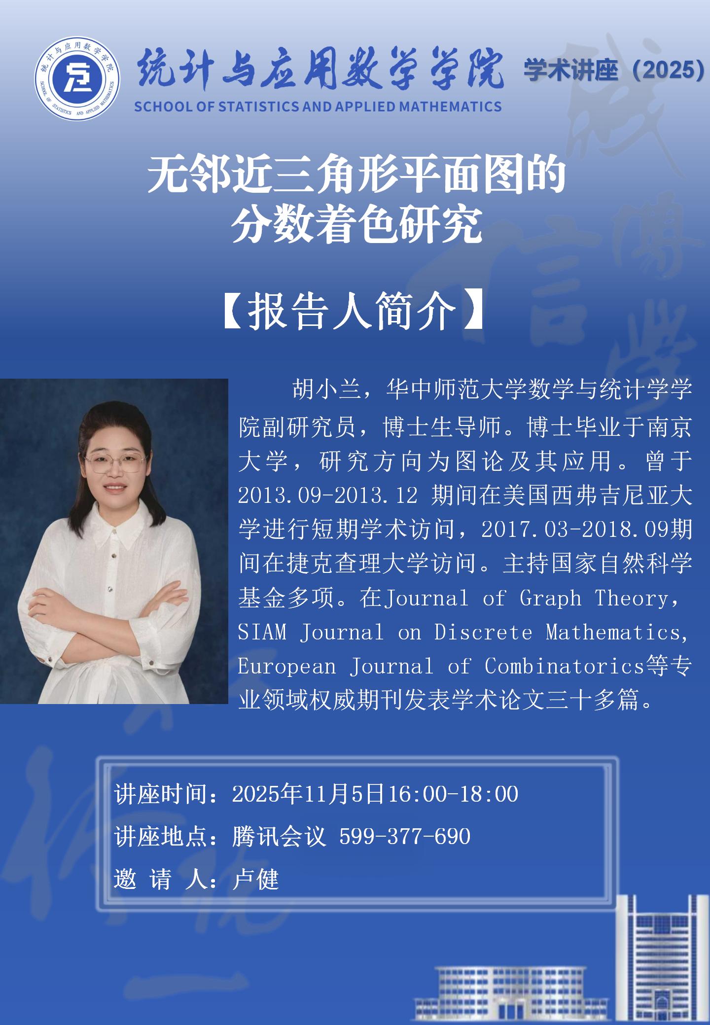 2025年学术讲座第50场:无邻近三角形平面图的分数着色研究